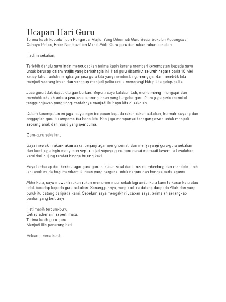 Contoh Karangan Ucapan Hari Guru Pdf